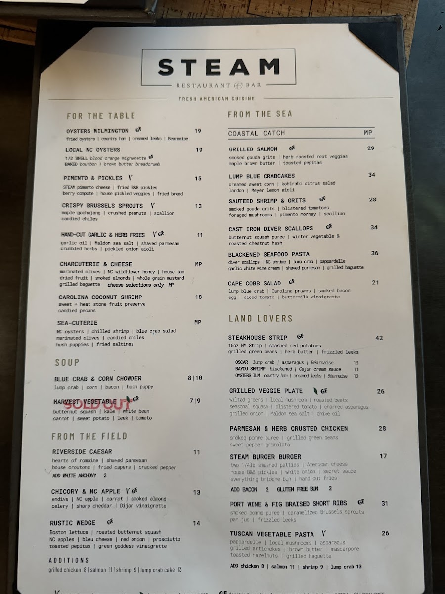Welcome to Steam Restaurant and Bar, a gem nestled at 9 Estell Lee Pl, Wilmington, NC. Here, culinary passion meets a warm, inviting atmosphere, making it an ideal dining spot for locals and visitors alike.
